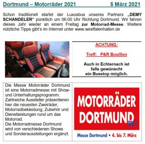 den Ausfluch op Dortmund – Motorräder vum 05.03.21 mussen mir leider wéinst Corona ofsoen
